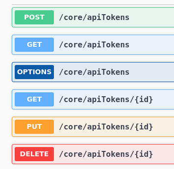 - DELETE /core/apiTokens/{id} – delete existing entity